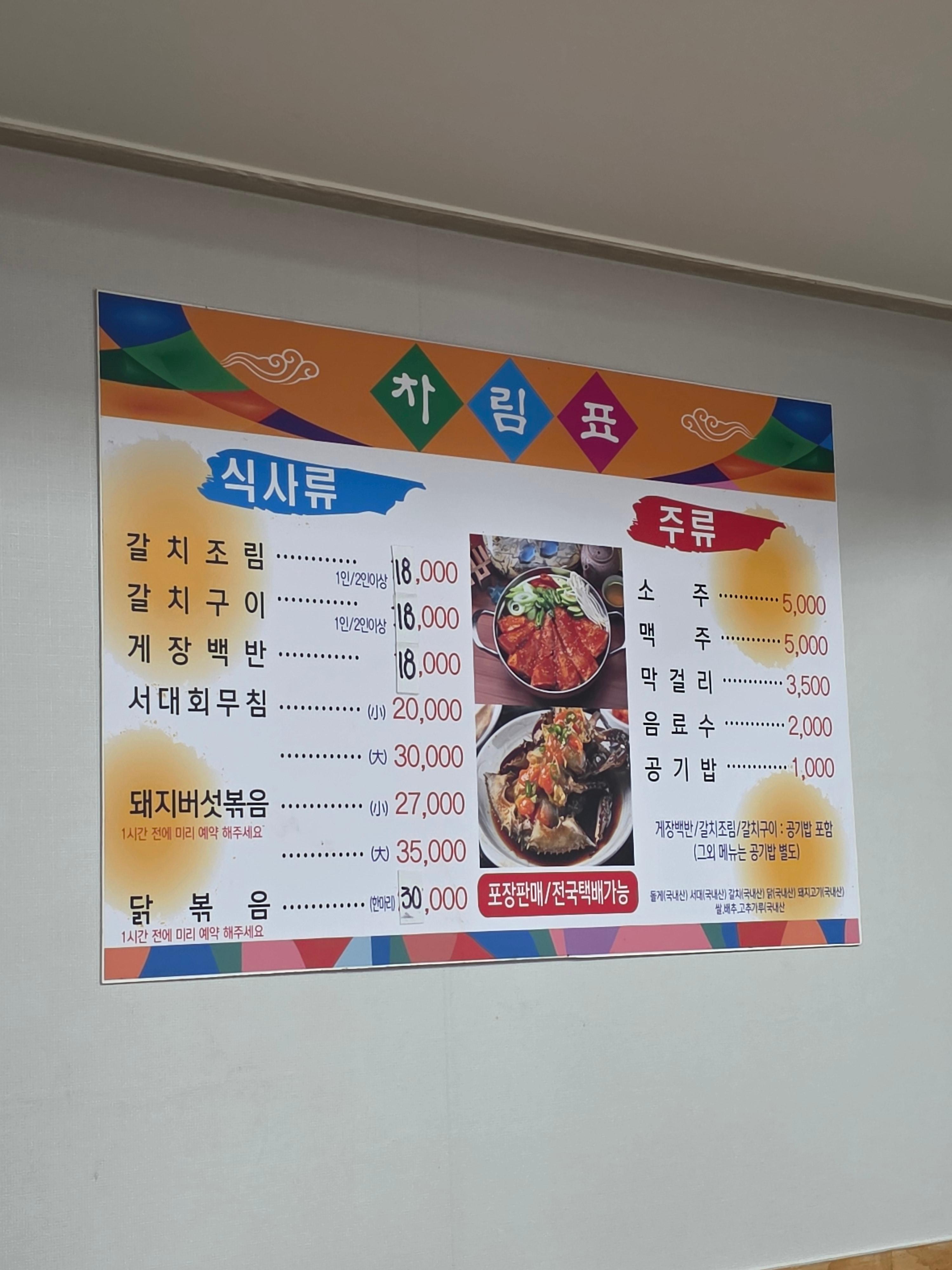 - 메뉴는 아래와 같고 여기는 갈치조림이 메인입니다.